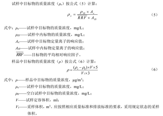 六家實(shí)驗(yàn)室分別對(duì)加標(biāo)濃度為0.4~17µg/m3、8.3~83µg/m3、60.0~600µg/m3的空白加標(biāo)樣品進(jìn)行了測(cè)定,實(shí)驗(yàn)室內(nèi)相對(duì)標(biāo)準(zhǔn)偏差分別為4.3%~15%、1.9%~12%、1.9%~11%;實(shí)驗(yàn)室間相對(duì)標(biāo)準(zhǔn)偏差分別為3.7%~15%、6.6%~10%、2.7%~10%;重復(fù)性限分別為0.07~4.3µg/m3、0.87~9.6µg/m3、9.0~89µg/m3;再現(xiàn)性限分別為0.14~6.2µg/m3、1.7~15µg/m3、13~1.6×102µg/m3。參見附錄A。