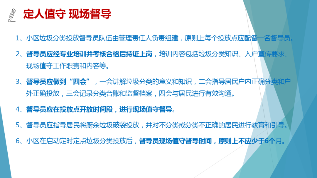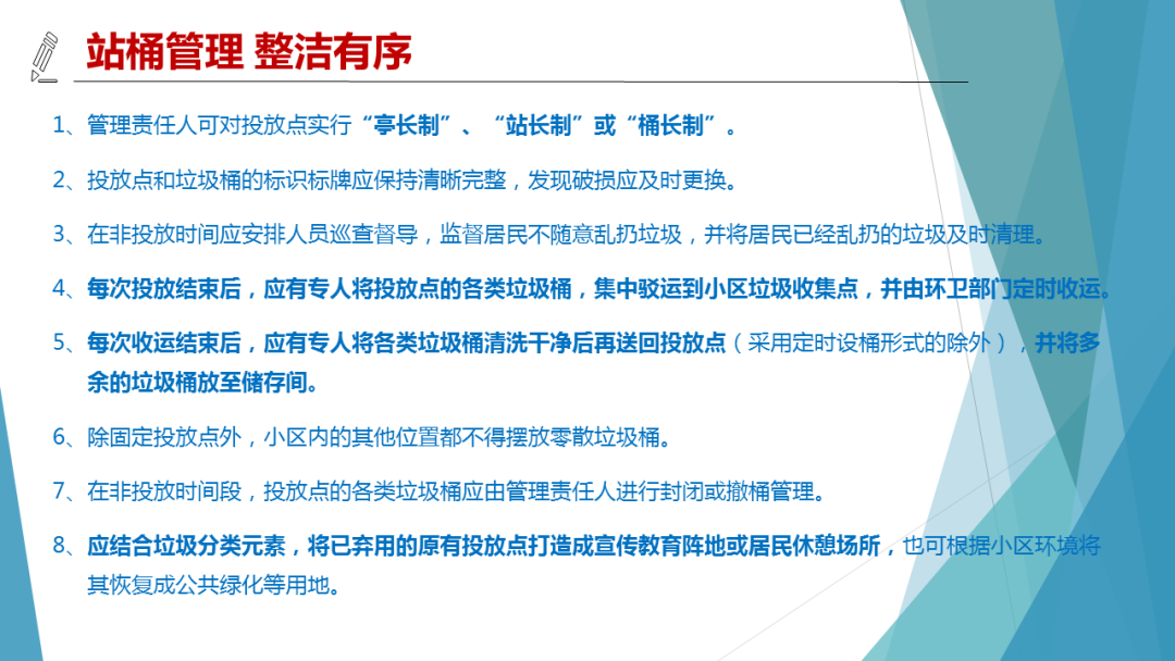 自習(xí)近平總書記2016年11月21日提出要建立生活垃圾分類制度以來,46個重點城市的垃圾分類工作取得了初步成效,其他城市的垃圾分類工作也在逐步推進(jìn),但由于受新冠疫情等影響,總體進(jìn)展情況低于預(yù)期。垃圾分類是一項涉及面很廣的系統(tǒng)工程,其中小區(qū)投放環(huán)節(jié)是決定成敗的核心環(huán)節(jié),而“簡便易行、合理布局”是投放設(shè)施設(shè)置的基本準(zhǔn)則。如何按照這個準(zhǔn)則來規(guī)范管理人職責(zé)和行為、優(yōu)化投放點設(shè)置和形式、實施居民區(qū)宣傳和督導(dǎo)?本期固廢觀察將與你一一分享。