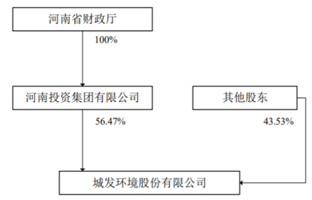 城發(fā)環(huán)境第一大股東為河南投資集團有限公司,持股56.47%,該股東為河南省財政廳100%控股。