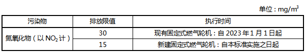 表1 固定式燃?xì)廨啓C(jī)大氣污染物排放限值