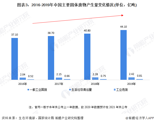 二、產(chǎn)業(yè)上游:全國(guó)固體廢物產(chǎn)生量不斷增長(zhǎng)