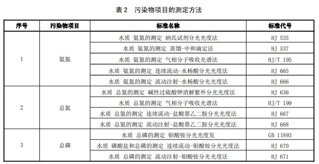 對(duì)水污染物測(cè)定的項(xiàng)目及與之對(duì)應(yīng)的測(cè)定方法見(jiàn)表2,表2中對(duì)部分污染物指標(biāo)的測(cè)定,可根據(jù)檢測(cè)資源情況,選擇適宜的方法,但對(duì)同一項(xiàng)指標(biāo),每次測(cè)定均宜采用同一種方法,測(cè)定數(shù)值異常時(shí),可用不同的方法驗(yàn)證。