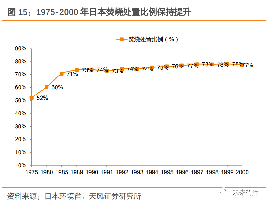 1.3. 補(bǔ)貼退坡已被市場消化,期待垃圾發(fā)電企業(yè)的破局之道補(bǔ)貼退坡影響已被市場消化,板塊估值處于歷史低位。近兩年,市場對垃圾焚燒補(bǔ)貼退坡的擔(dān)憂一直成為壓制板塊估值的重要因素之一,垃圾焚燒企業(yè)表現(xiàn)近年弱于市場。2020 年 9 月 29 日,《關(guān)于<關(guān)于促進(jìn)非水可再生能源發(fā)電健康發(fā)展的若干意見>有關(guān)事項(xiàng)的補(bǔ)充通知》發(fā)布,更是加劇了市場對焚燒發(fā)電企業(yè)的盈利性和成長性的擔(dān)憂,造成短期板塊的明顯下挫。9 月 29 日至今,垃圾焚燒(長江)指數(shù)下降 12.3%;而同期上證綜指上漲 1.8%, 大幅跑輸市場 14.1 個百分點(diǎn)。從估值層面看,截至最新,我們選取的 8 家垃圾焚燒發(fā)電企業(yè),綜合市盈率 19 倍,處歷史低位。我們認(rèn)為垃圾焚燒發(fā)電企業(yè)仍有成長及盈利優(yōu)化空間。我國垃圾焚燒企業(yè)運(yùn)營收入包括上網(wǎng)電費(fèi)收入及垃圾處理服務(wù)費(fèi)收入,占比大致為 7:3。發(fā)電收入中,噸上網(wǎng)電量受入爐垃圾熱值、技術(shù)工藝、廠用電率等因素影響;上網(wǎng)電價受政策調(diào)控,由當(dāng)?shù)孛摿蛉济簷C(jī)組標(biāo) 桿上網(wǎng)電價、省級電網(wǎng)負(fù)擔(dān)和國家可再生能源電價附加基金負(fù)擔(dān)三部分構(gòu)成。垃圾處置費(fèi)根據(jù)噸垃圾處置單價(競標(biāo)決定)和處理量確定,由項(xiàng)目所在地政府支付。本篇報告將從行業(yè)成長性(與焚燒處理量相關(guān)),以及垃圾發(fā)電企業(yè)盈利性(與企業(yè)財務(wù)狀況、噸上網(wǎng) 電量、噸垃圾處理費(fèi)單價相關(guān))兩方面出發(fā),解析國補(bǔ)退坡及垃圾分類背景下,為何依舊 看好行業(yè)的發(fā)展前景。2. 成長性方面,國內(nèi)垃圾焚燒市場仍大有可為2.1. 復(fù)盤國外:焚燒處置量趨穩(wěn),分類制度并未產(chǎn)生明顯減量效果2.1.1. 日本:焚燒是垃圾處置主流方式,多年占比超 70%1980s 開始,日本大規(guī)模實(shí)施垃圾分類,并未造成焚燒處置量下降。1960s,在經(jīng)濟(jì)高速發(fā)展背景下,日本多個地區(qū)垃圾處置產(chǎn)能與處置需求間存在較大缺口,政府加大焚燒處置推進(jìn)力度,垃圾焚燒產(chǎn)業(yè)得到快速擴(kuò)張。1975 年-2000 年,日本垃圾焚燒處置比例由 52.20% 逐步提升至 77.40%,焚燒比例快速提升。這個過程伴隨著經(jīng)濟(jì)增長帶來的人均垃圾產(chǎn)量的持續(xù)增長,和垃圾分類從 1980s 開始大規(guī)模實(shí)施。事實(shí)上,1980-2000 年期間,日本垃圾分類造成的資源化比例提升,并未造成焚燒處置量的下降,焚燒量和焚燒處置比例持續(xù)保持正增長。