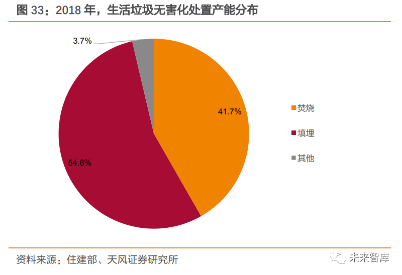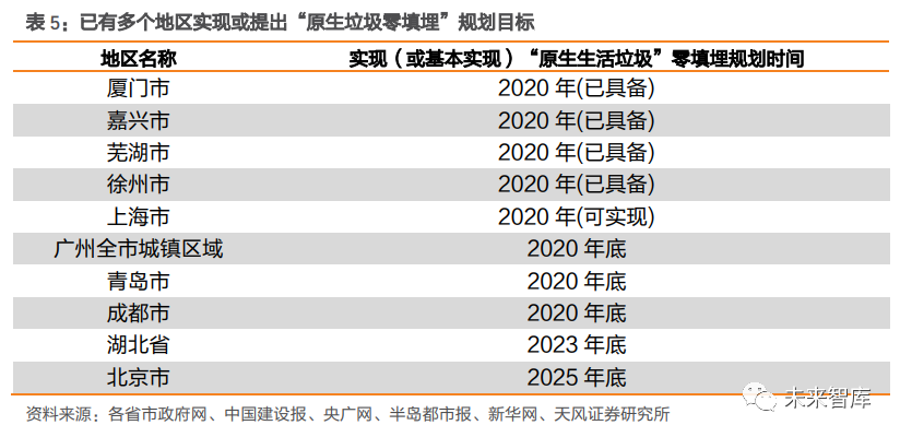 土地資源緊張+選址困難,填埋產(chǎn)能新增難度較大。一方面,我國土地資源較為緊張,城鎮(zhèn)化又進(jìn)一步壓縮了城市公用設(shè)施用地的供給空間,垃圾填埋廠用地受限。另一方面,垃圾填埋場選址難度較大,需考量地質(zhì)、地形、水文、氣候、城市規(guī)劃、交通運(yùn)輸?shù)雀黝愐蛩?,不符合《生活垃圾衛(wèi)生填埋處理技術(shù)規(guī)范》等相關(guān)規(guī)定中選址要求的填埋場,很可能無法滿足環(huán)評要求,填埋產(chǎn)能新增難度較大。環(huán)保治理力度加大+填埋場超負(fù)荷運(yùn)行,垃圾填埋存量項(xiàng)目封場提速。非正規(guī)垃圾填埋場由于配套設(shè)施不健全、執(zhí)行標(biāo)準(zhǔn)缺失、不規(guī)范填埋作業(yè)等多種原因,對周邊環(huán)境存在著較為嚴(yán)重的污染隱患。隨著居民環(huán)保訴求提升以及政府層面環(huán)保治理力度加大,不符合環(huán)保要求的填埋場陸續(xù)被關(guān)停。我國在《“十二五”全國城鎮(zhèn)生活垃圾無害化處理設(shè)施建設(shè)規(guī)劃》首次提出存量垃圾治理,預(yù)計實(shí)施存量治理項(xiàng)目 1882 個,衛(wèi)生填埋場封場項(xiàng)目有 802 個。“十三五規(guī)劃”預(yù)計實(shí)施存量治理項(xiàng)目 803 個。此外,垃圾填埋場超負(fù)荷運(yùn)轉(zhuǎn)現(xiàn)象突出,庫容趨飽和,加速封場進(jìn)程。由于近些年垃圾產(chǎn)量增速較高,以及部分地區(qū)焚燒設(shè)施尚在規(guī)劃建設(shè)中,垃圾填埋場超負(fù)荷運(yùn)轉(zhuǎn)現(xiàn)象突出, 庫容加速飽和,需提前封場。以 2020 年 2 月封場的西安市江村溝垃圾填埋場為例,作為曾經(jīng)國內(nèi)以及亞洲最大的垃圾填埋場,其設(shè)計日處理量 2600 噸。但隨著城市發(fā)展以及人口快速增長,垃圾處理量已由建成之初的 800 噸/日上升至 2019 年 10000 噸/日左右,超負(fù)荷運(yùn)轉(zhuǎn)下提前 20 年迎來飽和。垃圾填埋“新增難+存量減”背景下,垃圾焚燒替代屬性凸顯,產(chǎn)能占比有望進(jìn)一步提升。 垃圾焚燒作為垃圾填埋的最主要替代方式,具有占地面積小、處理效率高、環(huán)境污染小、 能源利用高等多方面優(yōu)勢。2020 年 8 月,國家發(fā)展改革委、住房城鄉(xiāng)建設(shè)部和生態(tài)環(huán)境部 等三部委聯(lián)合印發(fā)《城鎮(zhèn)生活垃圾分類和處理設(shè)施補(bǔ)短板強(qiáng)弱項(xiàng)實(shí)施方案》,明確提出“原 則上地級以上城市以及具備焚燒處理能力的縣(市、區(qū)),不再新建原生生活垃圾填埋場, 現(xiàn)有生活垃圾填埋場主要作為垃圾無害化處理的應(yīng)急保障設(shè)施使用?!苯刂聊壳?,已有多個省市提出“原生生活垃圾零填埋”的規(guī)劃目標(biāo),垃圾焚燒替代屬性凸顯。