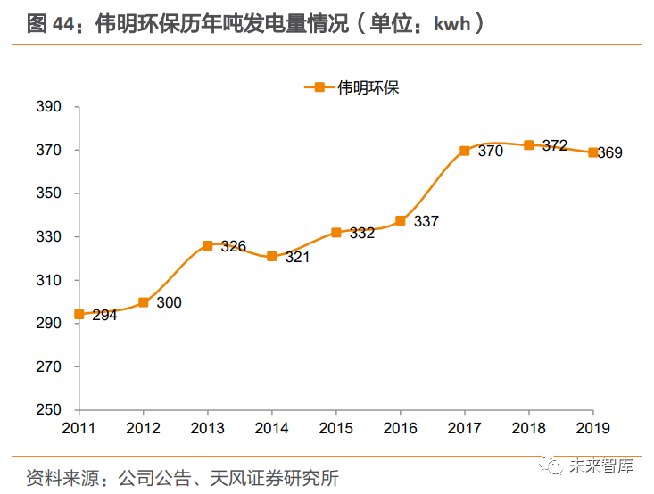 3.1.2. 運(yùn)營占比提升+補(bǔ)貼發(fā)放提速,垃圾發(fā)電企業(yè)報表有望迎來修復(fù)運(yùn)營占比提升,改善企業(yè)盈利能力及現(xiàn)金流情況。隨著企業(yè)在建項(xiàng)目陸續(xù)達(dá)產(chǎn),疊加國內(nèi)新增產(chǎn)能增速放緩背景下,項(xiàng)目新建數(shù)量增速或?qū)⒎啪?,企業(yè)運(yùn)營項(xiàng)目占比有望提升。相較于投產(chǎn)期,運(yùn)營期資本開支壓力減小,企業(yè)現(xiàn)金流壓力將得到緩解;同時企業(yè)資產(chǎn)負(fù)債 率下降,有助于降低財務(wù)費(fèi)用,改善項(xiàng)目盈利能力。以偉明環(huán)保瑞安項(xiàng)目為例,該項(xiàng)目于 2010 年 8 月動工建設(shè),于 2014 年 5 月開始運(yùn)營。進(jìn)入運(yùn)營期后,瑞安公司(瑞安項(xiàng)目的運(yùn)營主體)資產(chǎn)負(fù)債率有所下降,同時凈利率有所提升。存量項(xiàng)目拖欠的補(bǔ)貼解決后,企業(yè)現(xiàn)金流有望得到改善。補(bǔ)貼發(fā)放不僅可以通過改善現(xiàn)金流,降低財務(wù)杠桿來減少財務(wù)費(fèi)用,同時應(yīng)收賬款收回,前期應(yīng)收賬款計提減值沖回,也將增加公司當(dāng)期業(yè)績。截止 2020 年 4 月,全國垃圾焚燒運(yùn)營規(guī)模 50 萬噸/日,其中未納入目錄項(xiàng)目占比約 48%,累計拖欠補(bǔ)貼金額約 130 億元。從企業(yè)具體情況來看,我們測算出 2016-2020 年各家企業(yè)的累計拖欠補(bǔ)貼,并以累計拖欠補(bǔ)貼金額占 2019 年?duì)I收的比例作為利好彈性的觀測值。若存量補(bǔ)貼發(fā)放,對垃圾焚燒發(fā)電企業(yè)將帶來較大的現(xiàn)金流改善。3.2. 熱值增+技術(shù)優(yōu)化,噸發(fā)電量有望持續(xù)提升垃圾焚燒廠噸發(fā)電量及噸上網(wǎng)電量提升趨勢明顯。近年來,我國垃圾焚燒企業(yè)噸發(fā)電量及 噸上網(wǎng)電量呈現(xiàn)出明顯提升趨勢。深圳市生活垃圾處理監(jiān)管中心的數(shù)據(jù)顯示,2011~2018 年間,垃圾焚燒企業(yè)的噸垃圾上網(wǎng)電量均值提升了 42Kwh。龍頭企業(yè)提升趨勢更明顯,偉 明環(huán)保噸發(fā)電量由 2011 年 294Kwh 提升 75Kwh 至 2019 年 369Kwh,噸上網(wǎng)電量由 2011 年 239Kwh 提升 52Kwh 至 2020H1 的 291Kwh;光大環(huán)境噸上網(wǎng)電量也由 2011 年 226Kwh 提升 94Kwh 至 2020H1 的 320Kwh。