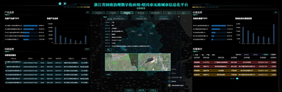 作為被列入“11+5”無(wú)廢試點(diǎn)城市的浙江紹興,建成全國(guó)首個(gè)對(duì)工業(yè)、農(nóng)業(yè)、建筑、生活、危廢等五大類固廢實(shí)行閉環(huán)管理的“無(wú)廢城市”信息化管理平臺(tái),堪稱無(wú)廢城市建設(shè)的“排頭兵”。在遙感監(jiān)測(cè)監(jiān)管方面,紹興“無(wú)廢城市”信息化平臺(tái)基于遙感大范圍、快速重復(fù)覆蓋的對(duì)地觀測(cè)能力,利用多源多星高分辨率衛(wèi)星遙感技術(shù),針對(duì)紹興工業(yè)固體廢物、農(nóng)業(yè)廢棄物、生活垃圾、建筑垃圾、危險(xiǎn)廢物的非法傾倒、堆放進(jìn)行定期、不定期全域監(jiān)管,識(shí)別非法傾倒點(diǎn)位,測(cè)算非法傾倒堆放面積;針對(duì)大型建設(shè)工程開(kāi)挖施工、礦山開(kāi)挖、疑似非法采礦和礦山恢復(fù)整治進(jìn)行全域監(jiān)管,識(shí)別建筑工程和采礦等行為的地表擾動(dòng)、固體廢棄物堆放對(duì)周邊生態(tài)環(huán)境影響。各類廢棄物的非法傾倒、堆放點(diǎn)位,大型工程開(kāi)挖施工、礦山開(kāi)發(fā)、尾礦庫(kù)堆放點(diǎn)位等情況經(jīng)過(guò)遙感監(jiān)測(cè)悉數(shù)摸底,通過(guò)分析監(jiān)管平臺(tái)本底數(shù)據(jù),與GIS地圖結(jié)合,形成全市統(tǒng)一監(jiān)控?cái)?shù)據(jù)看板,實(shí)現(xiàn)紹興全域的長(zhǎng)期動(dòng)態(tài)監(jiān)測(cè),對(duì)全局狀態(tài)精準(zhǔn)掌控、對(duì)具體變化細(xì)節(jié)智能對(duì)比,為執(zhí)法監(jiān)管提供科學(xué)數(shù)據(jù)決策。紹興無(wú)廢城市信息化平臺(tái)利用動(dòng)態(tài)視頻圖像分析能力,對(duì)固體廢棄物的非法傾倒、堆放、拋灑,非法開(kāi)挖施工等事件的遙感監(jiān)測(cè)圖像進(jìn)行精準(zhǔn)識(shí)別、比對(duì)分析,有效提升此類事件的監(jiān)測(cè)、預(yù)警及處置效率,打造更加全面更加精準(zhǔn)的全域事件監(jiān)管分析。