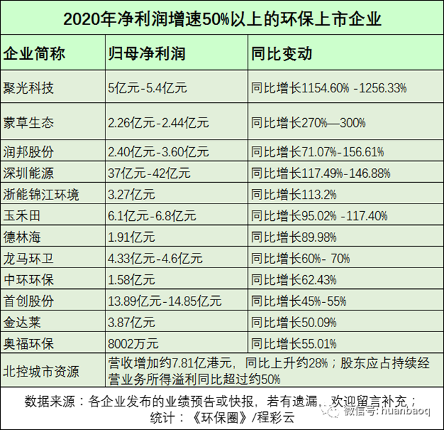 55家環(huán)保上市企業(yè)發(fā)布2020業(yè)績(jī)預(yù)告,占比總數(shù)2/3