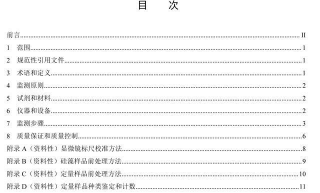 本文件規(guī)定了淡水浮游藻類的監(jiān)測(cè)原則、試劑和材料、儀器和設(shè)備、監(jiān)測(cè)步驟、質(zhì)量保證和質(zhì)量控制要求。