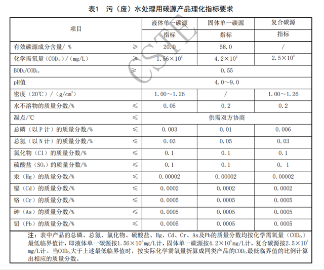 《污(廢)水處理用碳源T/CSTE 0001—2021》