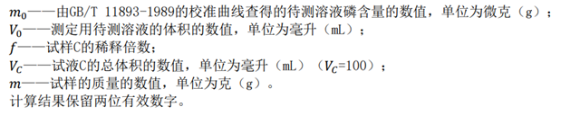 稱取 10 g 試樣,精確至 0.01 g,加水轉(zhuǎn)移至 100 mL 容量瓶中,用水定容至刻度,搖勻,此為試液 C。移取適量試液 A 于 100 mL 容量瓶中,采用逐級稀釋法,用水稀釋至刻度,搖勻,使待測溶液中總磷含量范圍在 0.01 mg/L——0.6 mg/L。
