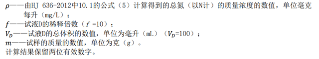 稱取10 g試樣,精確至0.01 g,加水轉(zhuǎn)移至100 mL容量瓶中,用水稀釋至刻度,搖勻。此為試液D。移取10 mL試液D至100 mL容量瓶中,加上稀釋至刻度,搖勻。必要時,采用逐級稀釋法,用水稀釋至刻度,搖勻,使待測溶液中總氮含量范圍在0.20 mg/L——7.00 mg/L。