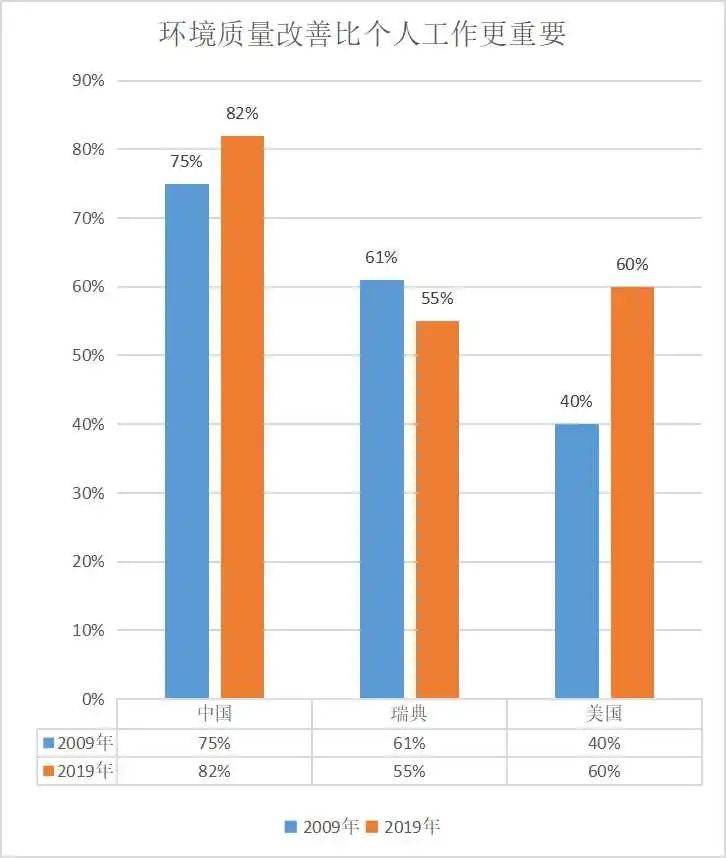 這張圖表很讓人振奮,這顯示中國民眾的環(huán)境意識(shí)覺悟程度,明顯高于美國和瑞典。