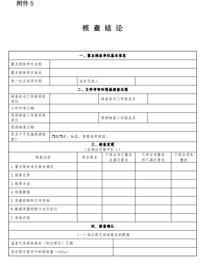 -對于提出不符合項的,技術(shù)工作組應(yīng)在收到重點排放單位提交的《不符合項清單》“整改措施及相關(guān)證據(jù)”一欄內(nèi)容后的5個工作日內(nèi)填寫完成《核查結(jié)論》。