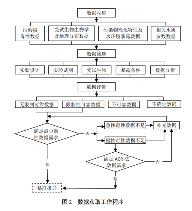 根據(jù)目標污染物的效應特征等,確定基準制定相關數(shù)據(jù)的來源、檢索方案、數(shù)據(jù)篩選與評價原則,以及開展補充生物毒性實驗或實施現(xiàn)場調(diào)查的必要性和要求。