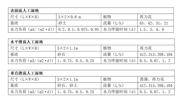 (1)人工濕地主要設(shè)計(jì)參數(shù)探索研究