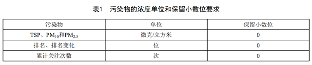 5.2.1 排名評價適用于對單點(diǎn)和屬地各評價項(xiàng)目污染濃度在所處地區(qū)的相對水平及其變化趨勢進(jìn)行評價,包括排名名次、排名變化和累計關(guān)注次數(shù)等。
