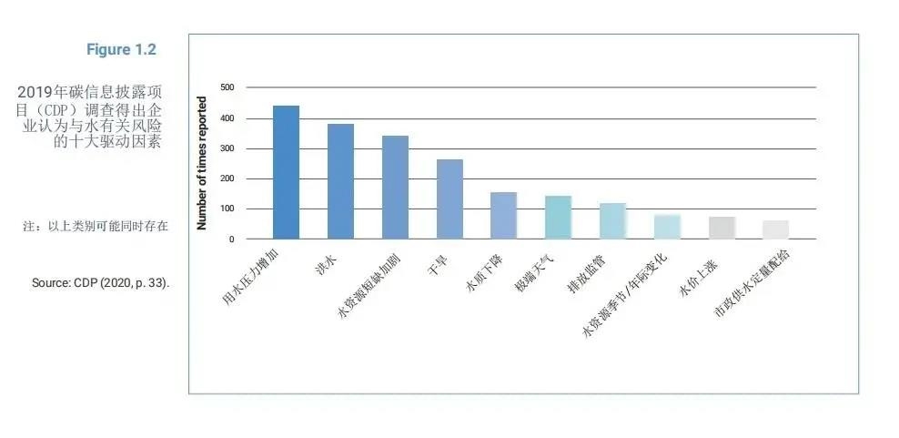 與水風(fēng)險(xiǎn)相關(guān)的高成本、低收益和財(cái)務(wù)損失問題十分嚴(yán)重。由于水資源短缺加劇、洪水泛濫和氣候變化,隨之而來的相關(guān)風(fēng)險(xiǎn)包括運(yùn)營成本上升、供應(yīng)鏈中斷、供水中斷、增長受限和品牌受損等。