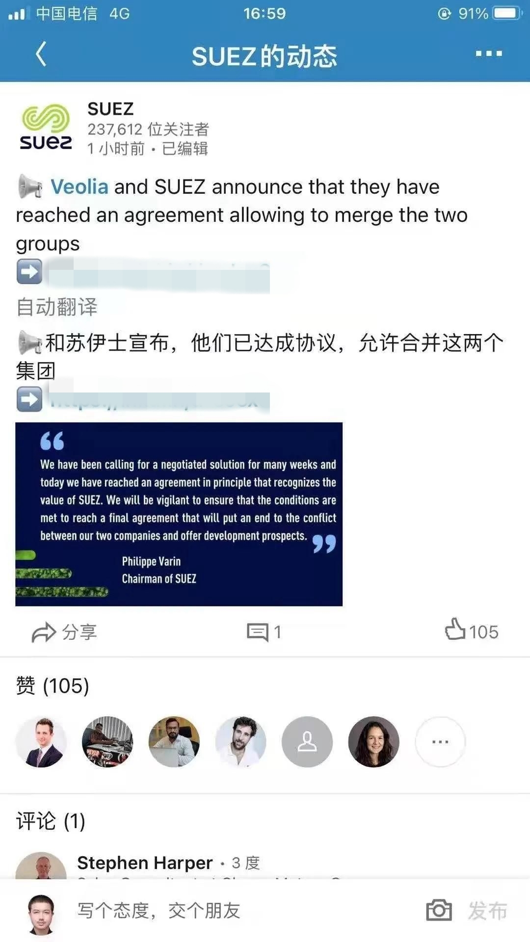 原標題:快訊:威立雅和蘇伊士宣布就合并達成一致