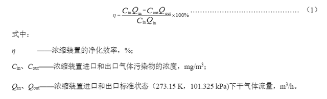 5.2.1正常工況下,進(jìn)氣揮發(fā)性有機(jī)物濃度≥100mg/m3時,濃縮裝置凈化效率應(yīng)≥90%。