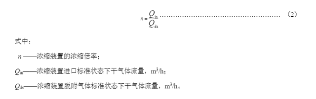 濃縮裝置處理氣體體積流量與脫附氣體體積流量的比值。