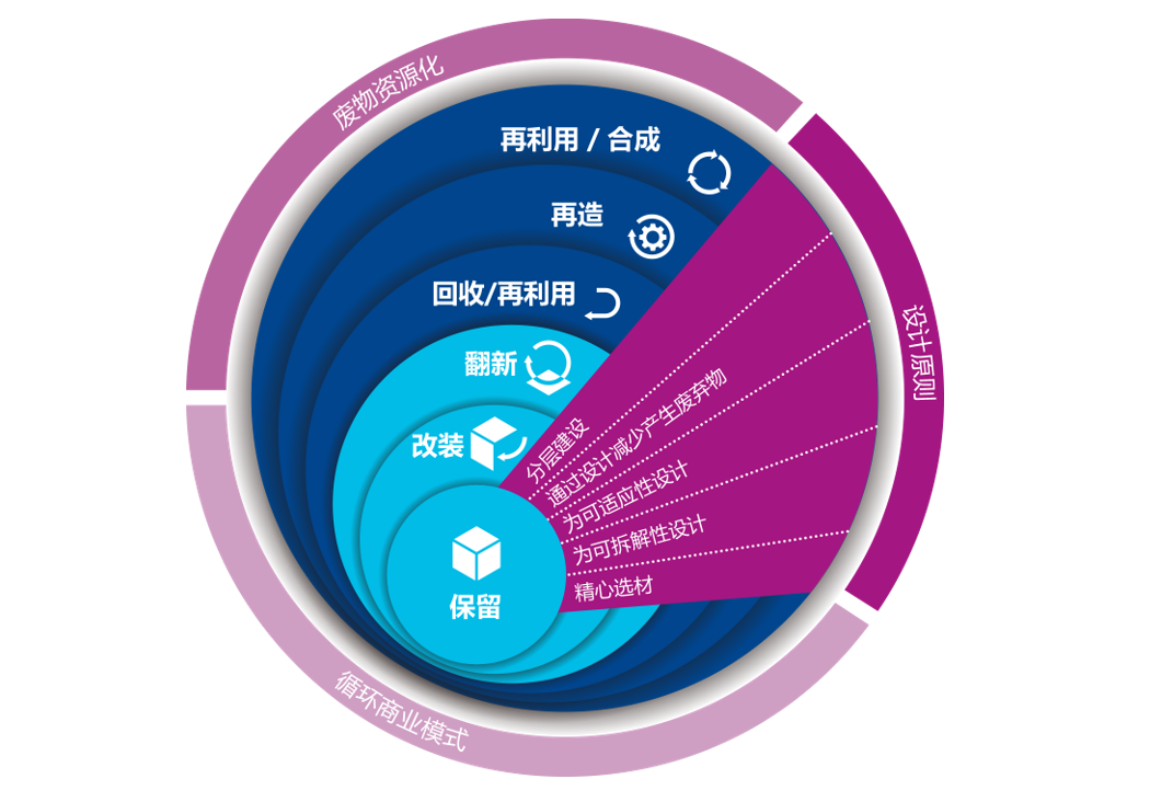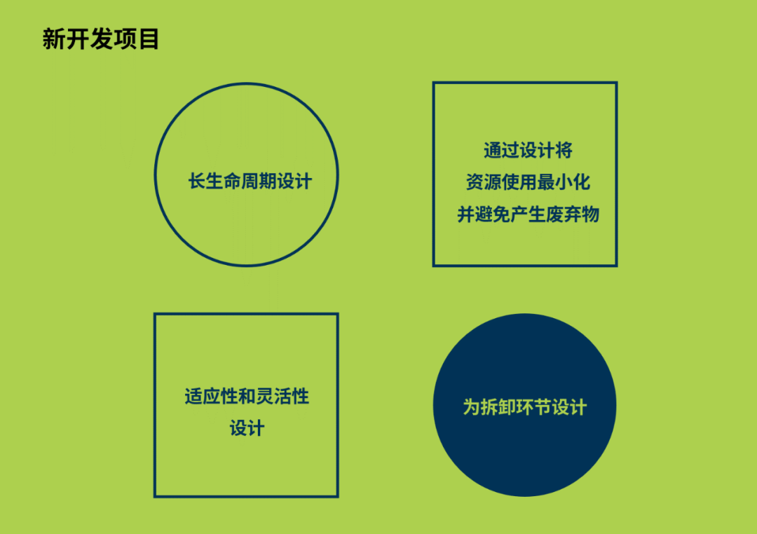 · 如何通過設(shè)計(jì)和施工安排削減對(duì)原料的需求,并使建筑材料、部件和產(chǎn)品在它們的使用壽命完結(jié)時(shí)能夠被拆解和再利用;