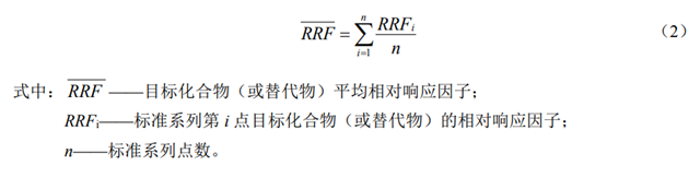 目標(biāo)化合物或替代物的平均相對(duì)響應(yīng)因子,按照公式(2)進(jìn)行計(jì)算: