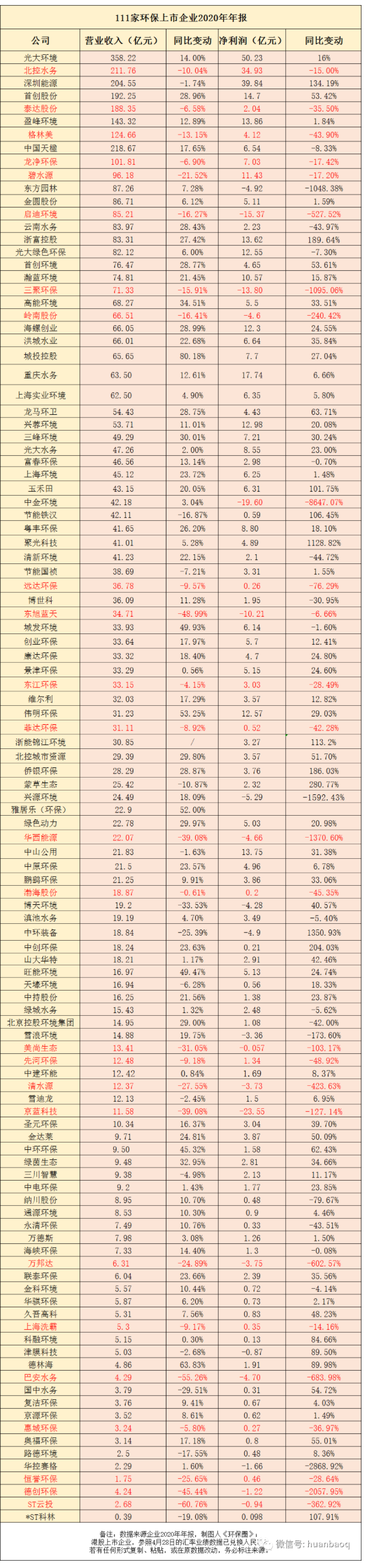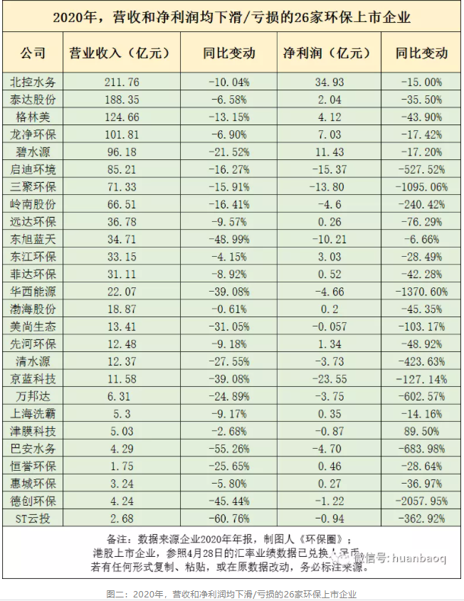 原標(biāo)題:111家上市環(huán)企2020年報盤點:北控啟迪碧水源營收凈利潤“雙降”