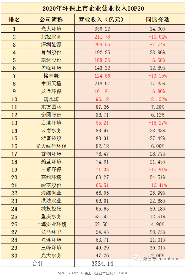從每年營收TOP30強上市環(huán)企排名中,就能窺探一二(如圖四所示)。