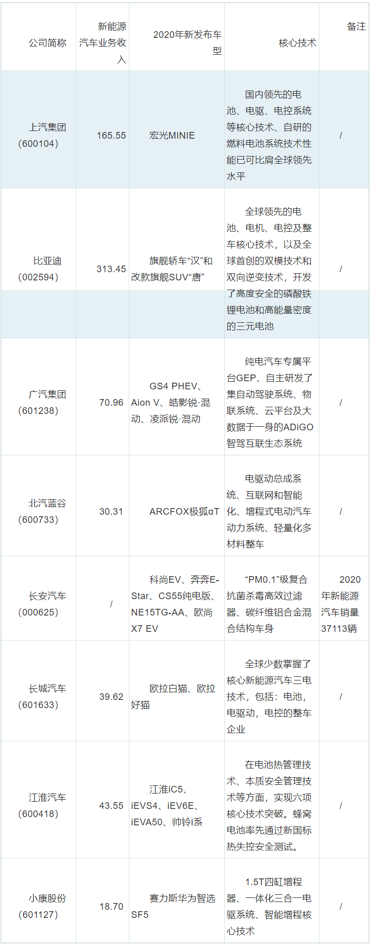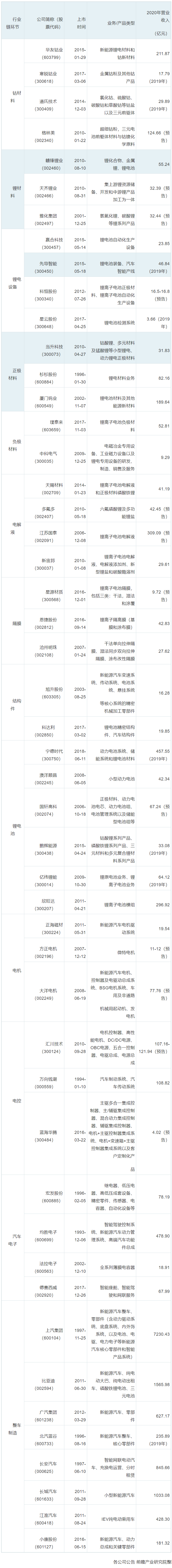 1、新能源汽車行業(yè)上市公司匯總