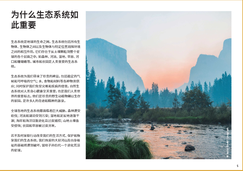 大至森林,小至池塘,都是生態(tài)系統(tǒng)。各式各樣的生態(tài)系統(tǒng)對人類社會至關重要,它們不僅為我們提供了水、食物、建筑材料和許多其他必需品,還有利于整個地球的利益和福祉,比如提供氣候保護和生物多樣性保護。