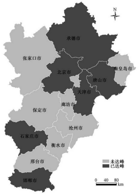 本文通過分析2015—2019年京津冀城市群不同城市的碳排放總量變化趨勢特征,研判京津冀城市群不同城市的經(jīng)濟增長與碳排放的脫鉤狀態(tài),得出北京、天津、石家莊和邯鄲經(jīng)濟增長與碳排放呈強脫鉤狀態(tài);保定、張家口和承德經(jīng)濟增長與碳排放呈弱脫鉤狀態(tài);唐山、秦皇島、邢臺、滄州和廊坊經(jīng)濟增長與碳排放呈擴張性負脫鉤狀態(tài);衡水市的經(jīng)濟增長與碳排放呈擴張性連接狀態(tài)。進而判定保定、張家口、秦皇島、邢臺、滄州、廊坊、衡水7市碳排放量暫未達到峰值狀態(tài),北京、天津、石家莊、承德、邯鄲和唐山6市碳排放量已經(jīng)處于碳排放達峰狀態(tài)。