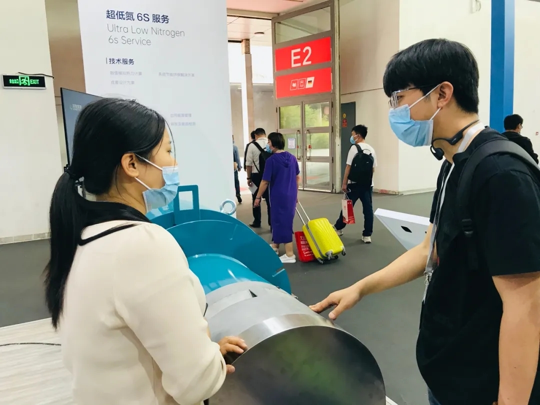 在產(chǎn)品展區(qū)內(nèi),不少專業(yè)觀眾對分體式超低氮燃燒器表現(xiàn)出濃厚興趣,紛紛駐足咨詢。該款設備融合了多級燃燒和煙氣內(nèi)循環(huán)技術(FIR);在工藝設計上優(yōu)化了風道結構,采用間接旁路點火的方式;配置了空氣和燃料配比自控系統(tǒng),進一步保障了節(jié)能“低碳”;獨特的結構設計,使得設備安裝便捷;可適配20t/h鍋爐,真正實現(xiàn)氮氧化物30mg/m³以下超低排放。