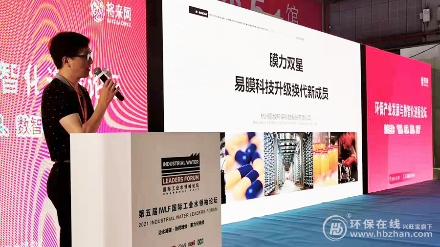 有展,也有會(huì)。本屆展會(huì)同期舉辦的“2021環(huán)保產(chǎn)業(yè)發(fā)展與數(shù)智化進(jìn)程論壇”上,易膜環(huán)保高級(jí)工程師王銘應(yīng)邀出席,并發(fā)表題為《膜力雙星 易膜科技升級(jí)換代新成員》的專題演講,對(duì)公司的發(fā)展情況、核心產(chǎn)品、產(chǎn)品特點(diǎn)及應(yīng)用領(lǐng)域等多個(gè)方面作了詳細(xì)匯報(bào)。