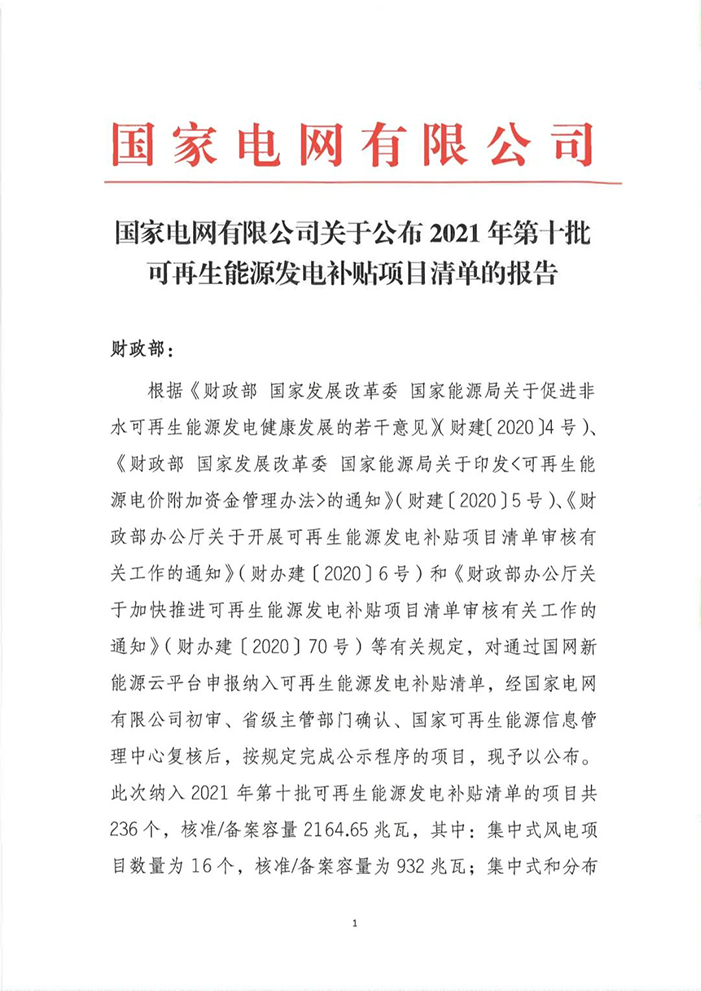 根據(jù)《財政部 國家發(fā)展改革委 國家能源局關(guān)于促進非水可再生能源發(fā)電健康發(fā)展的若干意見》(財建〔2020〕4號)、《財政部 國家發(fā)展改革委 國家能源局關(guān)于印發(fā)<可再生能源電價附加資金管理辦法>的通知》(財建〔2020〕5號)、《財政部辦公廳關(guān)于開展可再生能源發(fā)電補貼項目清單審核有關(guān)工作的通知》(財辦建〔2020〕6號)和《財政部辦公廳關(guān)于加快推進可再生能源發(fā)電補貼項目清單審核有關(guān)工作的通知》(財辦建〔2020〕70號)等有關(guān)規(guī)定,國家電網(wǎng)有限公司積極配合各省級能源主管部門和國家可再生能源信息管理中心,為符合中央財政補助條件的可再生能源發(fā)電項目提供補貼清單申報服務。