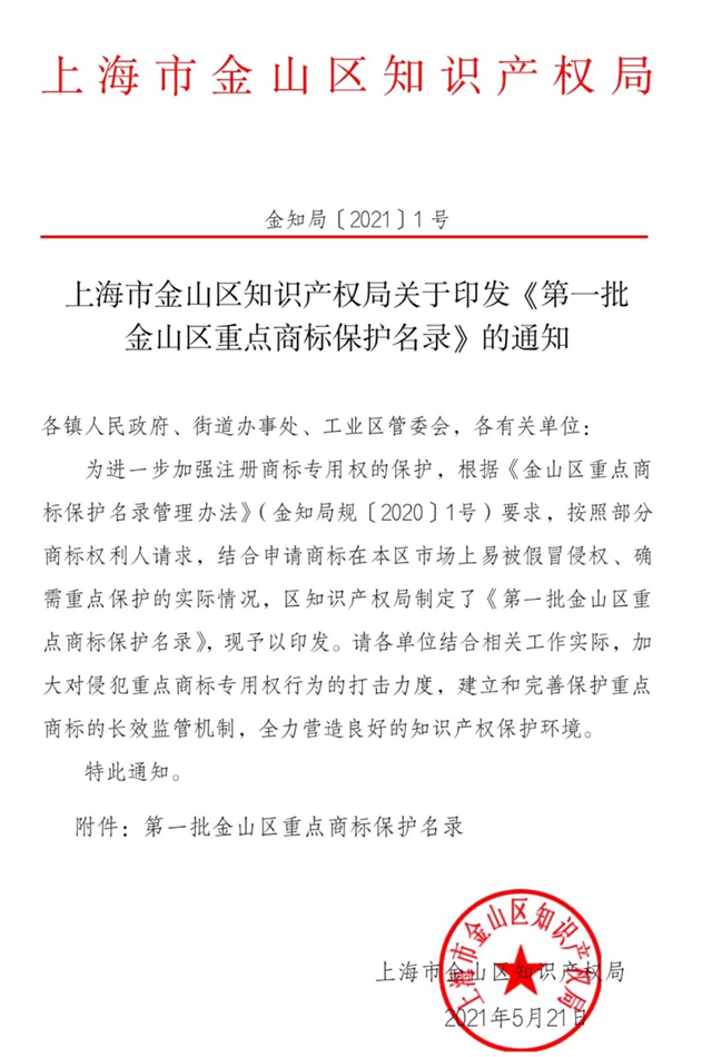 為進(jìn)一步加強(qiáng)注冊(cè)商標(biāo)專用權(quán)的保護(hù),根據(jù)《上海市金山區(qū)重點(diǎn)商標(biāo)保護(hù)名錄管理辦法》(金知局規(guī)〔2021〕1號(hào))要求,上海市金山區(qū)知識(shí)產(chǎn)權(quán)局領(lǐng)導(dǎo)經(jīng)過(guò)數(shù)月評(píng)審討論,結(jié)合申請(qǐng)商標(biāo)在市場(chǎng)上易被假冒侵權(quán)、確需重點(diǎn)保護(hù)的實(shí)際情況,于近日頒布《第一批金山區(qū)重點(diǎn)商標(biāo)保護(hù)名錄》,上海江浪科技股份有限公司成功入圍,企業(yè)實(shí)力再獲權(quán)威認(rèn)證!