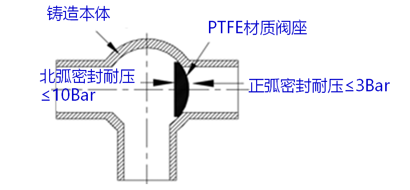 弧形密封閥座材質(zhì)由PTFE制成工作溫度:-40℃~110℃
