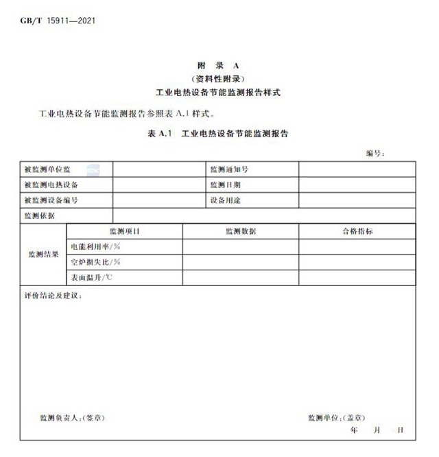 節(jié)能監(jiān)測的項目應(yīng)包含電能利用效率、空爐損失比和表面溫升。