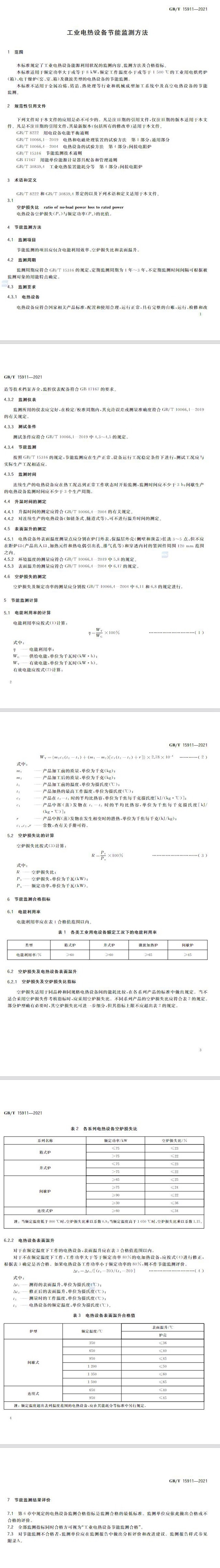 本標準適用于額定功率大于或等于8kW,額定工作溫度小于或等于1500°C的工業(yè)用電烘烤爐(箱)、電干燥爐(窯、室、箱)及微波類型的電熱設(shè)備的節(jié)能監(jiān)測。