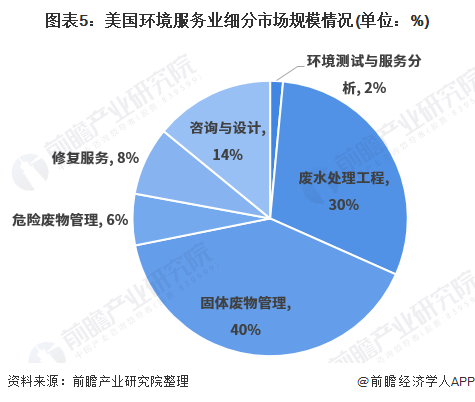 全球來看,北美市場發(fā)展良好,2020年美國環(huán)境服務業(yè)的市場規(guī)模將達到4600億元左右,廢物處置仍是環(huán)境服務項目的主要部分。