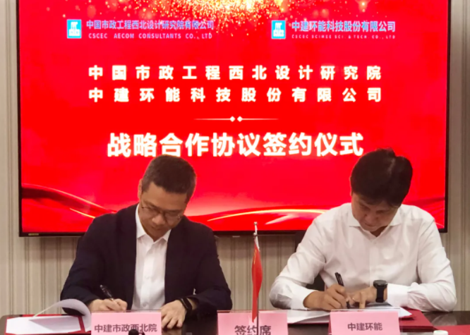 近日,中建環(huán)能科技股份有限公司與中國市政工程西北設(shè)計(jì)研究院有限公司在成都總部簽訂戰(zhàn)略合作框架協(xié)議。市政西北院副總經(jīng)理兼總工程師王斌,中建環(huán)能副董事長倪明亮共同見證簽約。