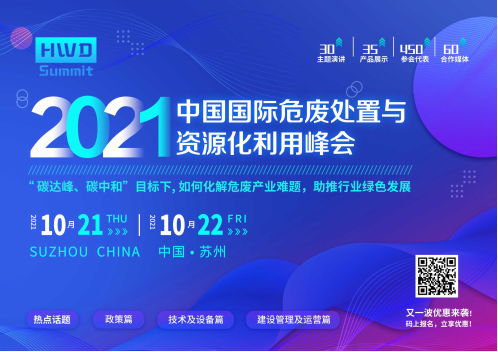 至此,2021中國(guó)國(guó)國(guó)際危廢處置與資源化利用峰會(huì)將于2021年10月21-22日在蘇州舉辦,會(huì)議以“ “碳達(dá)峰、碳中和”目標(biāo)下, 如何化解危廢產(chǎn)業(yè)難題,助推行業(yè)綠色發(fā)展 ”為主題,將聚焦十四五產(chǎn)業(yè)規(guī)劃,探索危廢行業(yè)技術(shù)與應(yīng)用創(chuàng)新,助力國(guó)內(nèi)外企業(yè)加快市場(chǎng)布局,促進(jìn)產(chǎn)業(yè)各方的交流合作!屆時(shí)歡迎相關(guān)企業(yè)及行業(yè)專(zhuān)家、學(xué)者踴躍參加!