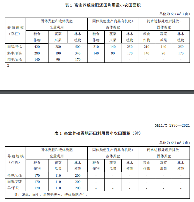 7.2 不同畜種及一定規(guī)模養(yǎng)殖場戶所需的糞肥還田利用最小農田面積按照表 1 的規(guī)定執(zhí)行。