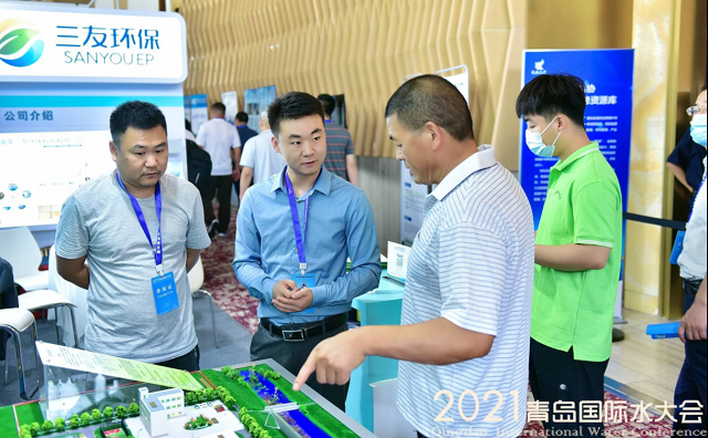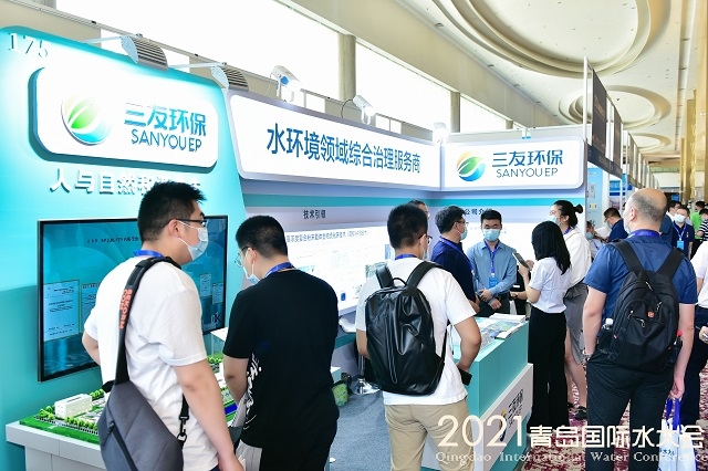 2021青島水國際大會(huì)現(xiàn)場三友環(huán)保展臺(tái)前觀眾參觀