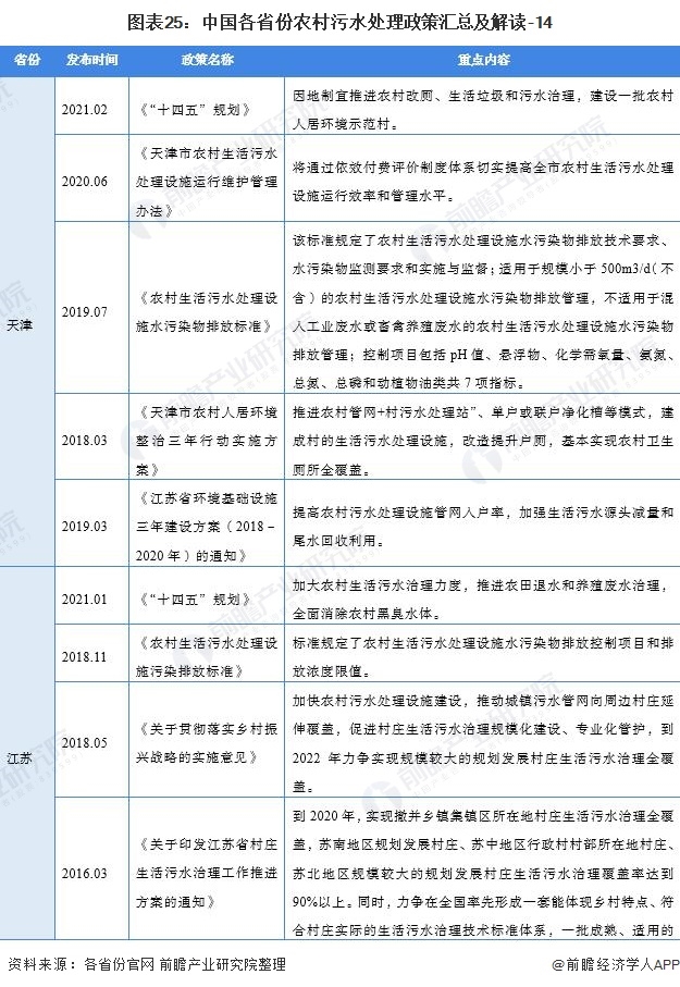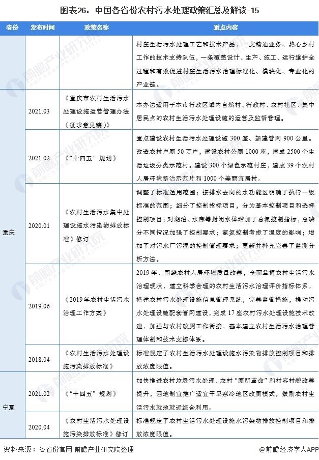 ——31個省(市、自治區(qū))農(nóng)村污水處理行業(yè)政策匯總