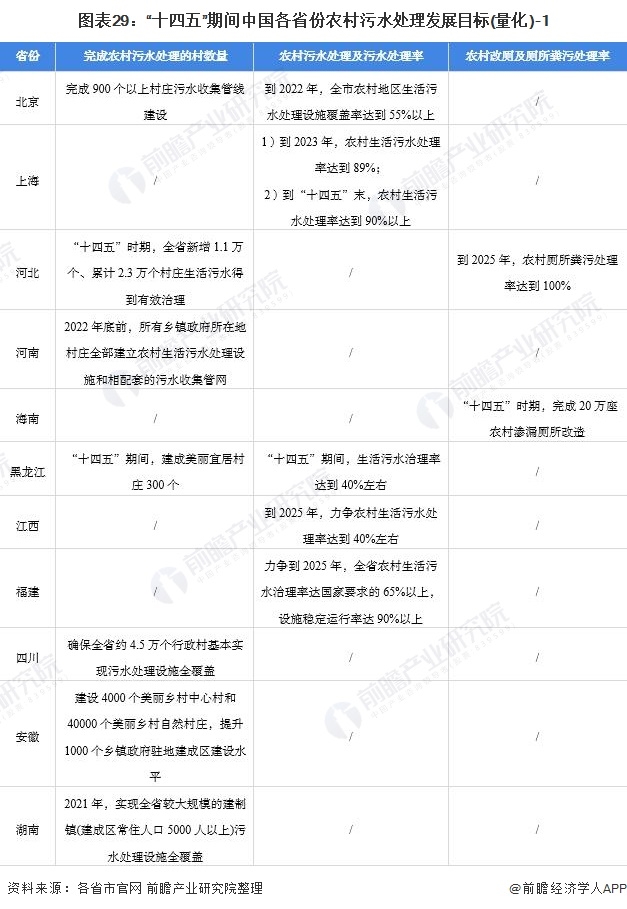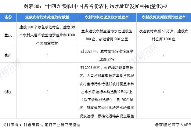 ——31個省(市、自治區(qū))農(nóng)村污水處理行業(yè)發(fā)展目標(biāo)解讀