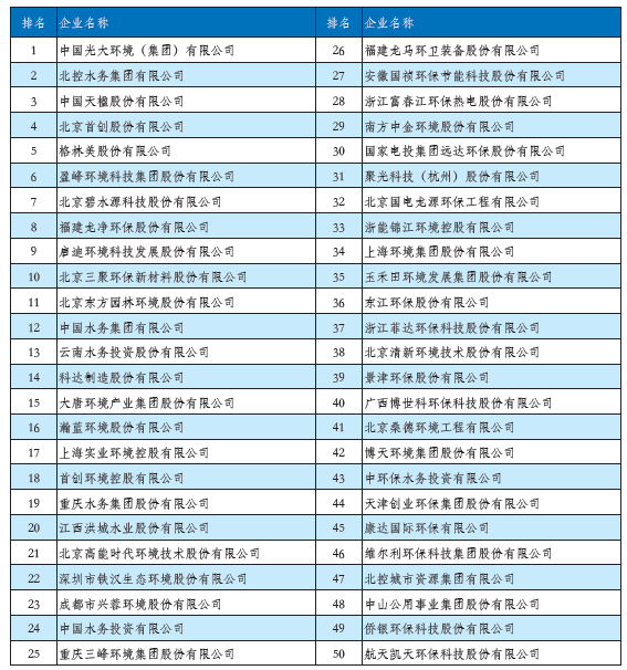 2020中國環(huán)境企業(yè)50強(qiáng)榜單