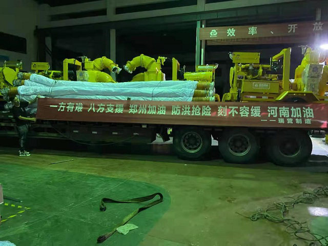 瑞營制造:移動防汛泵車助力鄭州災(zāi)后排澇 災(zāi)情發(fā)生后,上海瑞營機械制造有限公司工作人員冒著高溫連續(xù)加班,終于全部完成試機后裝車發(fā)貨,以確保移動防汛泵車第一時間到達洪澇災(zāi)害現(xiàn)場。
