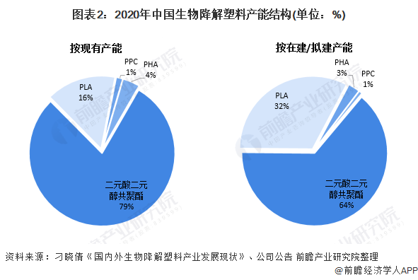 2、現(xiàn)有產(chǎn)能以PLA和二元酸二元醇共聚酯為主