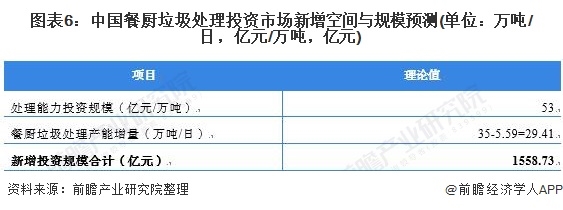 3、中國餐廚垃圾處理投資市場新增空間達到1558.73億元