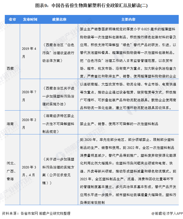 ——31省市生物降解塑料行業(yè)發(fā)展目標(biāo)解讀